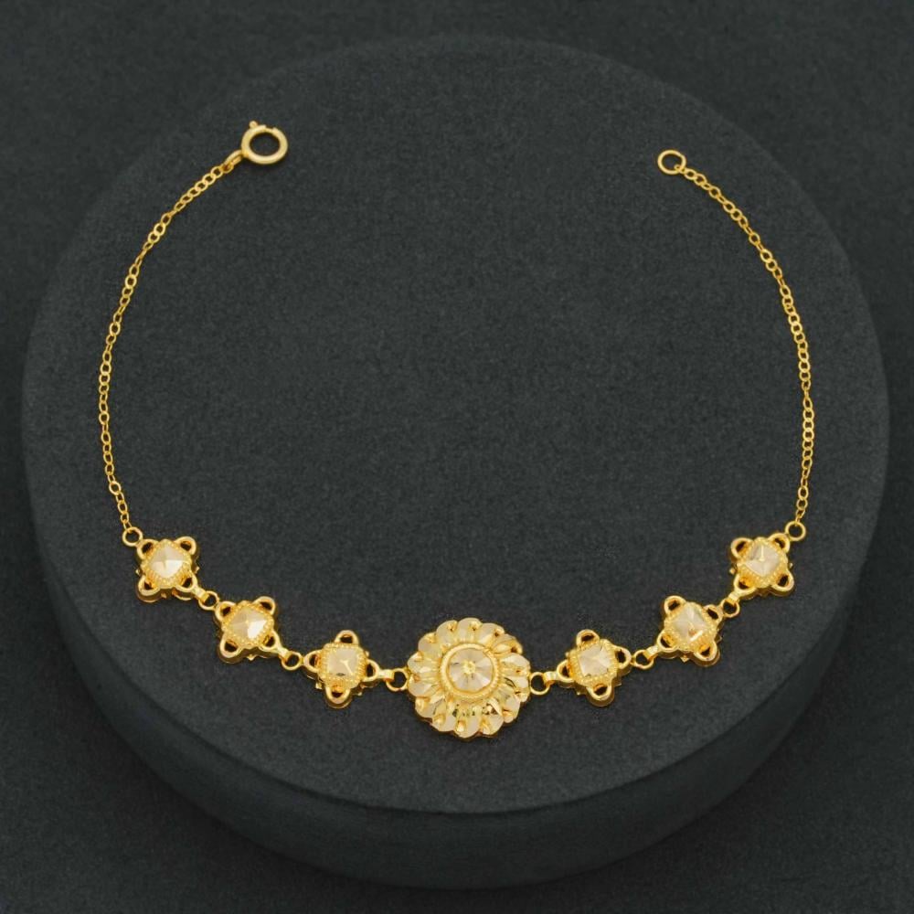 سوارة ذهب كرسي جابر، مليئة بتفاصيل متقنة، وفاخرة، ولامعة؛ لإنها مصنوعة من الذهب الخالص عيار 21، تمنحك هذه السوارة لمسة استثنائية وحضور راقي، وتليق بإستخدامك اليومي، وبالمناسبات أيضًا؛ لتكون إحدى أسرار، ولمسات إطلالتك التي لا تُنسى. ✨