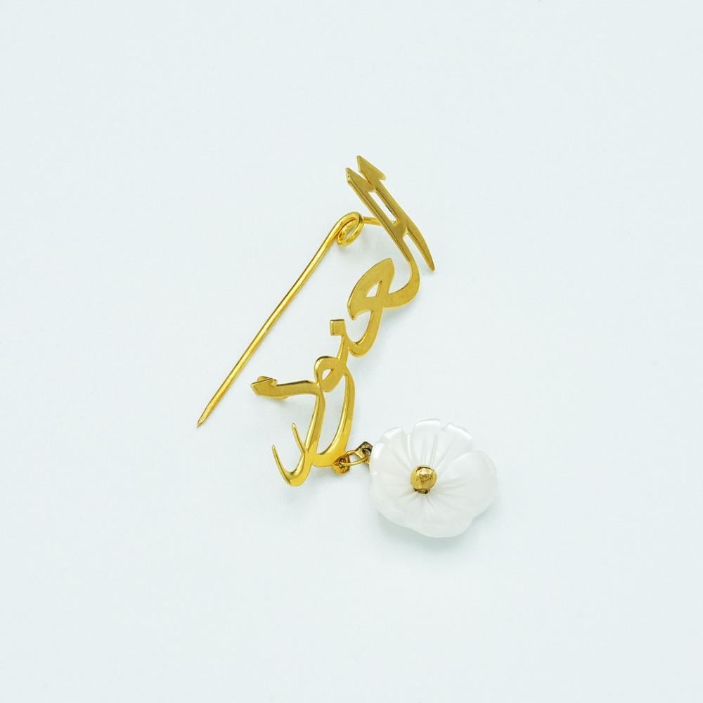 في هذا البروش، تختلط الأناقة بالنقاء، وتتمازج قوة الاسم برقة الورد...قطعة تُهديك اقتنباس جمالك، وتوشوش لك: "أنتِ استثنائية... لإنك غير عادية." 💖"