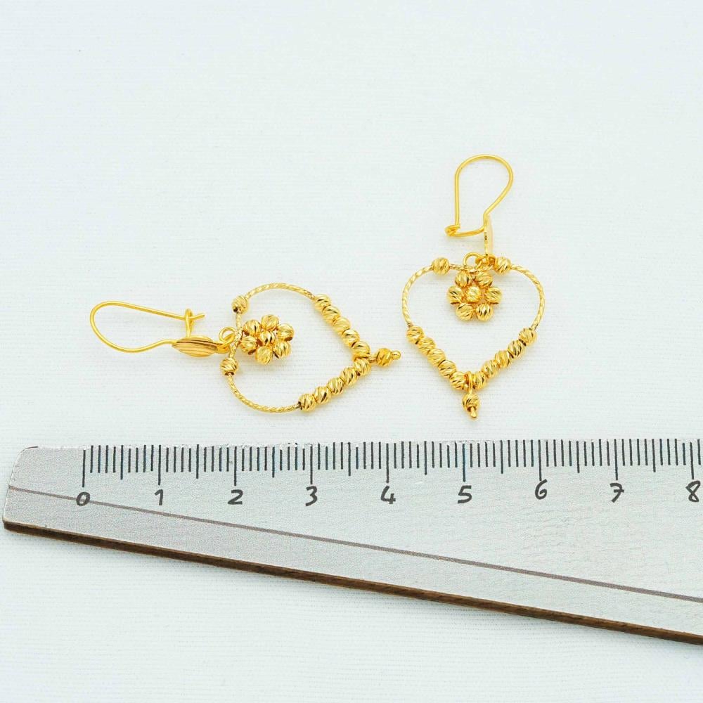 حلق ذهب قلب مميز يضم بداخله كرات ذهب صغيرة تتشكل على شكل وردة، ليجمع بين كل التفاصيل الأنثوية الراقية، والناعمة وليليق بذوقك الرفيع.