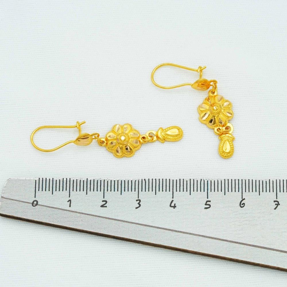 حلق ذهب يتدلى بكل نعومة ليزين أذنك بكل جاذبية، مصنوع من الذهب الأصلي عيار 21، دعيني أخبرك بأنه يناسب فقط النساء صاحبات الذوق الرفيع.