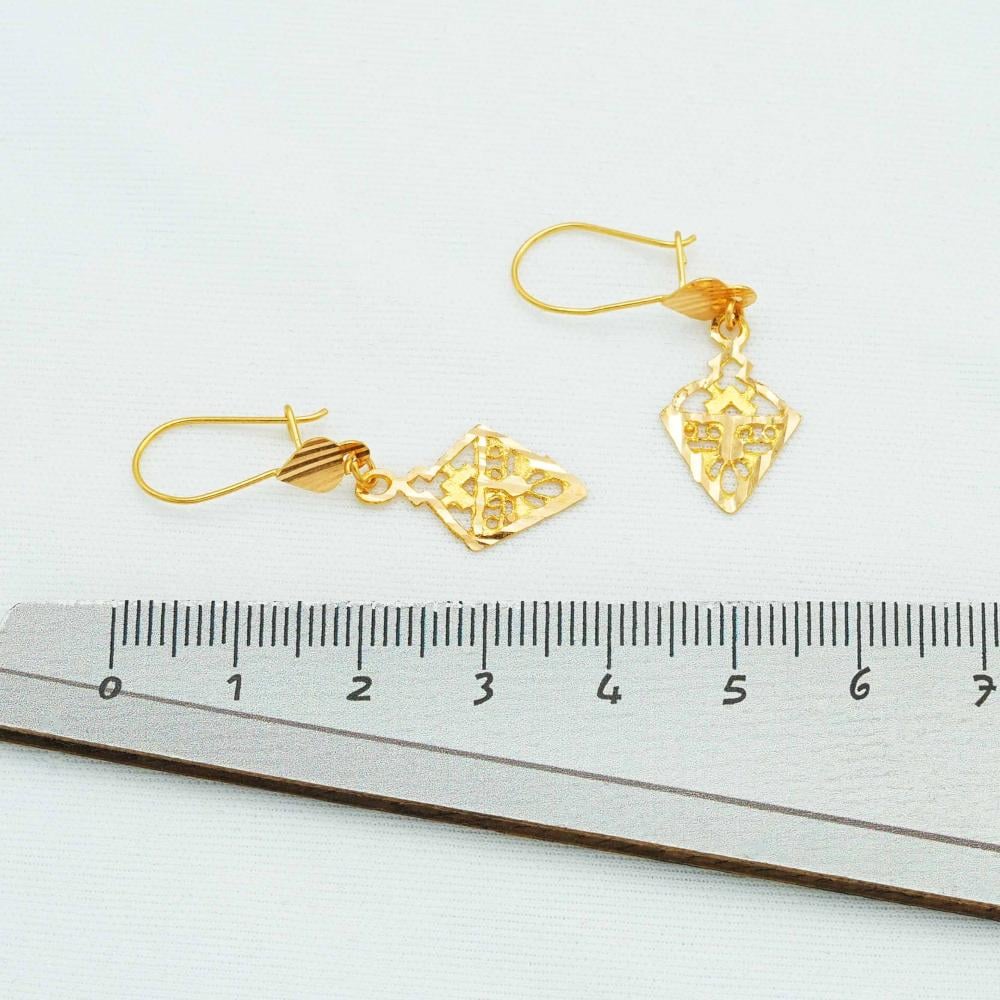 حلق ذهب يتدلى بكل نعومة ليزين أذنك بكل جاذبية، مصنوع من الذهب الأصلي عيار 21، دعيني أخبرك بأنه يناسب فقط النساء صاحبات الذوق الرفيع.
