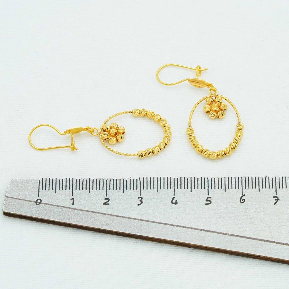 حلق ذهب يتدلى بكل نعومة ليزين أذنك بكل جاذبية، مصنوع من الذهب الأصلي عيار 21، دعيني أخبرك بأنه يناسب فقط النساء صاحبات الذوق الرفيع.