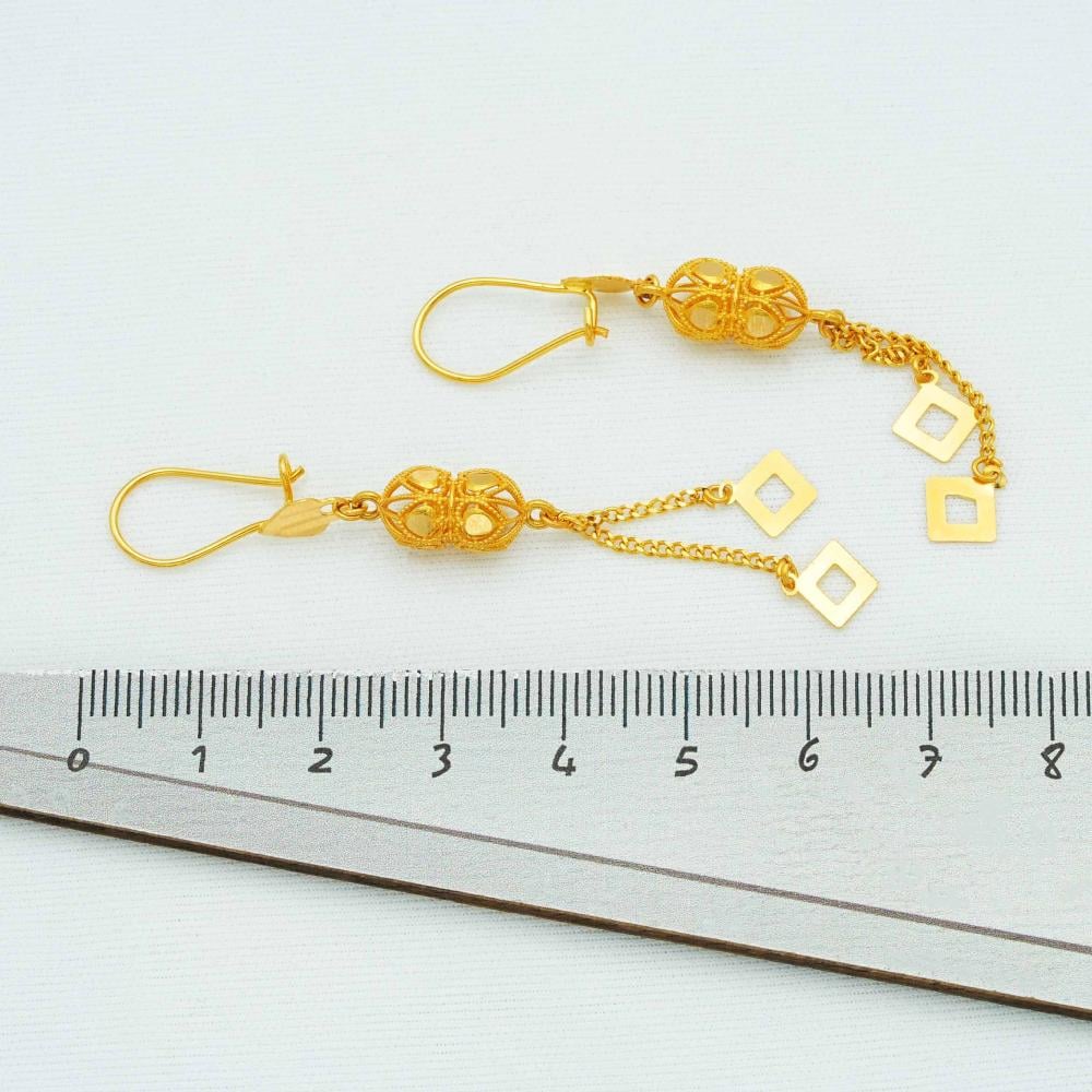 حلق ذهب يتدلى بكل نعومة ليزين أذنك بكل جاذبية، مصنوع من الذهب الأصلي عيار 21، دعيني أخبرك بأنه يناسب فقط النساء صاحبات الذوق الرفيع.