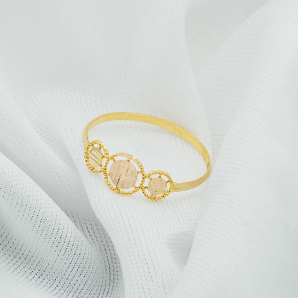 خاتم ذهب نسائي مصنع من الذهب عيار 21، يتوسطه دائرة أنيقة بارزة محاطة بإطار لامع، مع دوائر على الجانبين تزيده أناقة، وبتناغم متقن، كل التفاصيل تعكس اللمعان بجاذبية ملفتة للأنظار، التصميم فخم، ومميز، ويعتبر خاتمك المثالي لكل إطلالة ناعمة.🌟