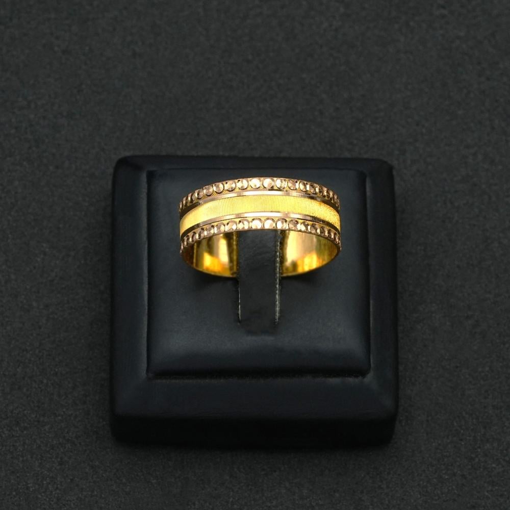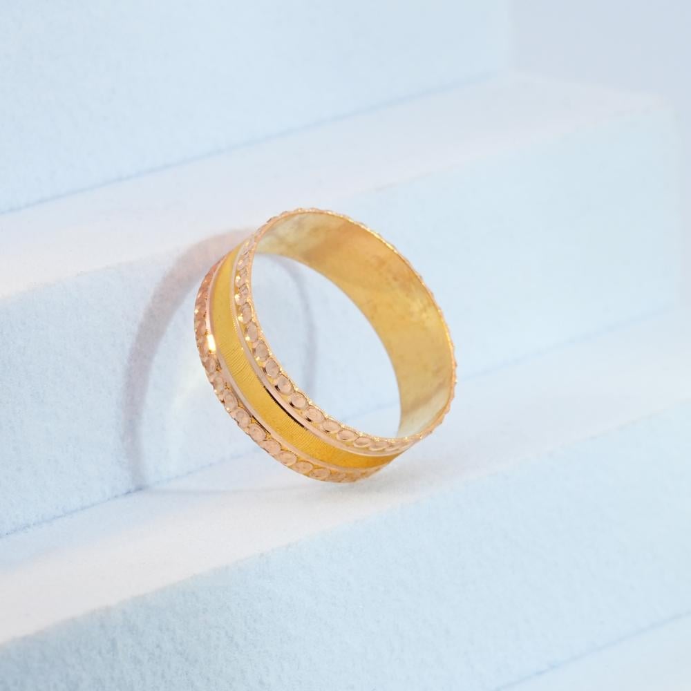 دبلة ذهب مصنوعة من الذهب الأصلي، تعبر عن االأناقة والرقي، حيث تمتزج التفاصيل الدقيقة مع الذهب الخالص عيار 21 لتقديم قطعة فريدة من نوعها. تصميمها يُجسّد لمسة الفخامة والتميز، مما يجعلها خيارًا مثاليًا للخطوبة، والزواج.
