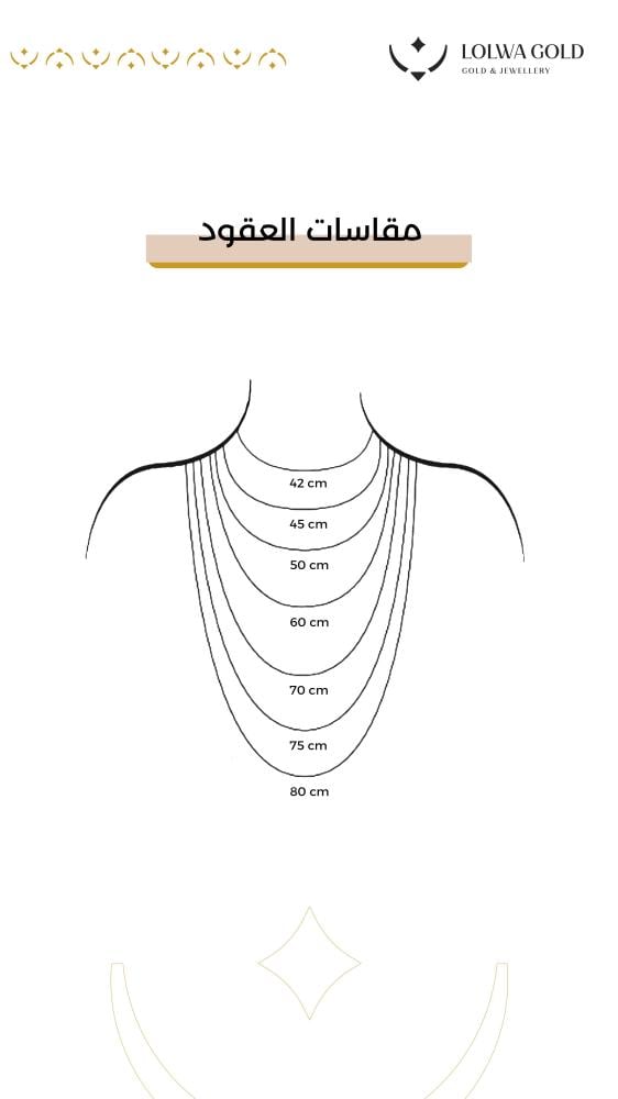 مع طول 40 سم، تنسدل السلسلة بشكل مثالي على عنقكِ. هذا الطول يجعلها الخيار المثالي للارتداء اليومي أو للمناسبات الخاصة، حيث يمكنكِ تنسيقها بسهولة مع أي إطلالة.