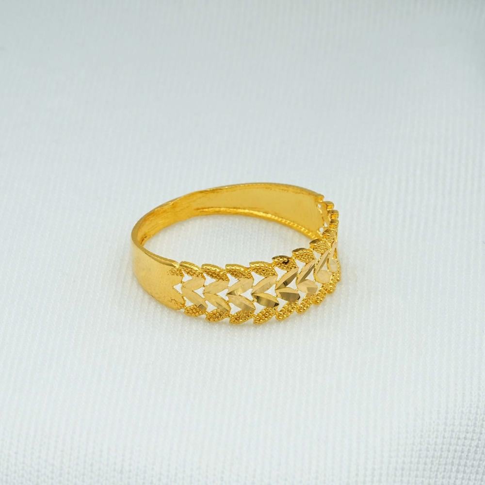 خاتم ذهب أنيق لمعانه ملفت وكأنه ضوء شمس متوهج، تشعري وكأنه رواية جمال صامته من الذهب الخالص توضع على اصبعك؛ ليزيده اصبعك جمال على جماله.