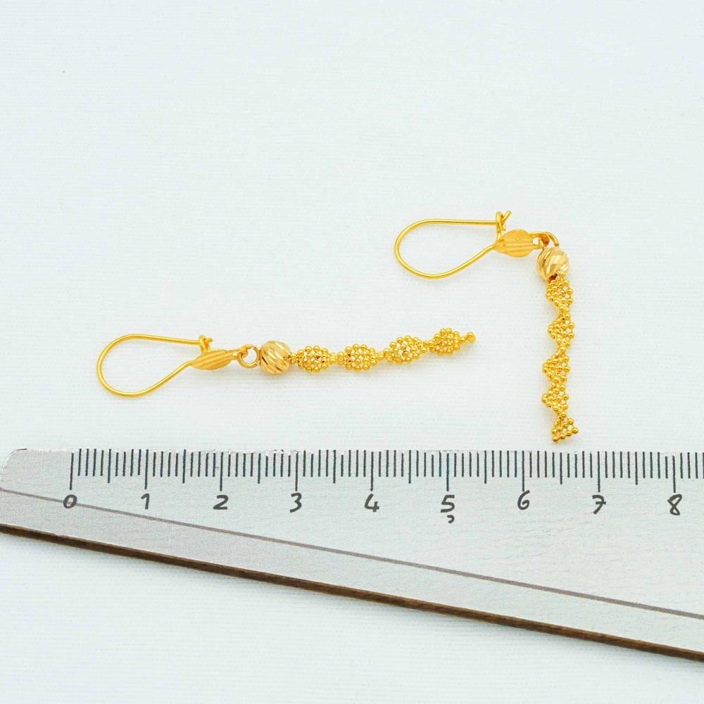 حلق ذهب يتدلى بكل نعومة ليزين أذنك بكل جاذبية، مصنوع من الذهب الأصلي عيار 21، دعيني أخبرك بأنه يناسب فقط النساء صاحبات الذوق الرفيع.