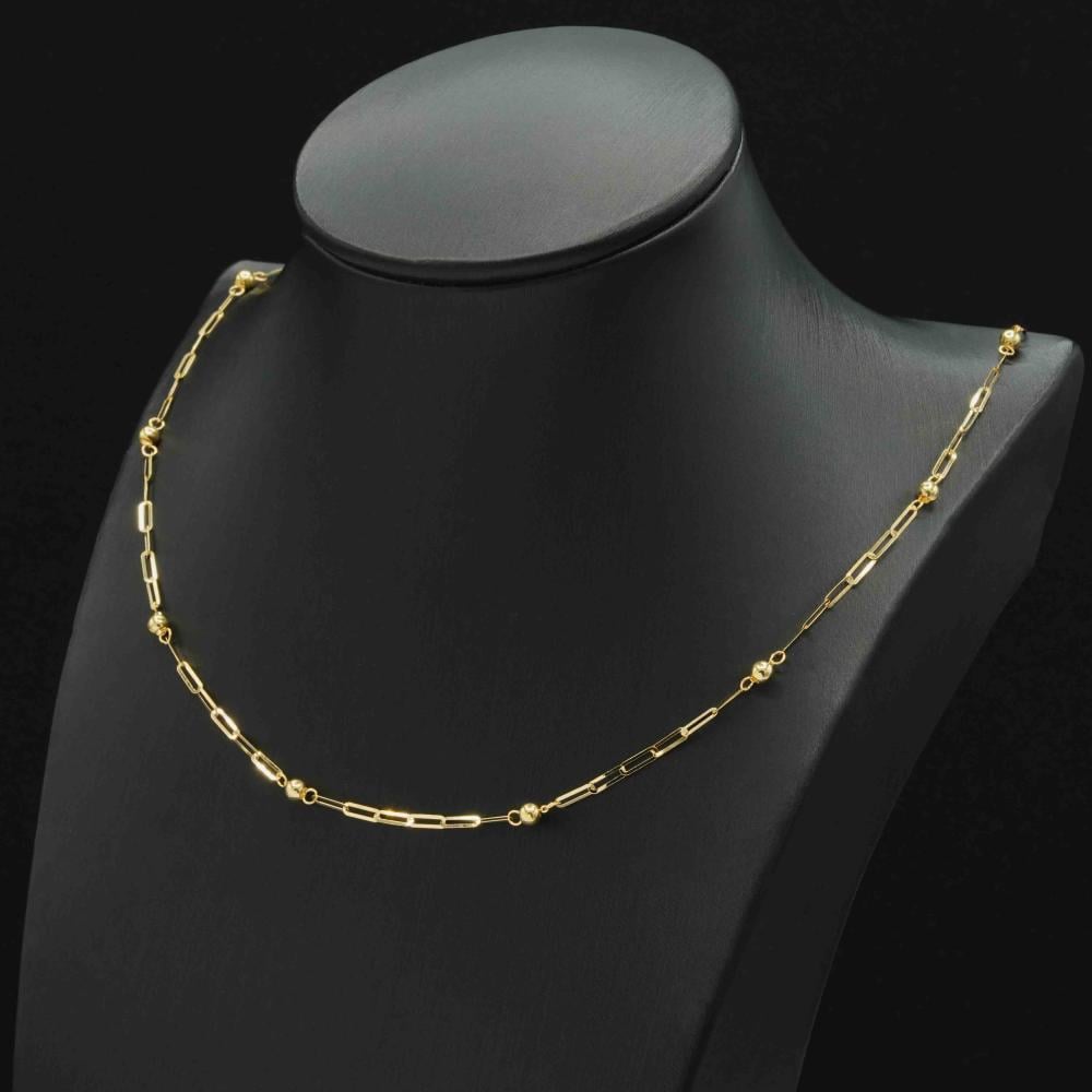 سلسال ذهب بحلقات مترابطة، وأنيقة مصنوع من الذهب الخالص عيار 18، مع كرات ذهب تتناثر على طول السلسلة الذهب، بالإضافة لشكله المميز، أيضًا يمتاز بأنه أنيق، وناعم، ومميز، وملفت للأنظار أيضًا ويمكنك تنسيقه مع مختلف إطلالاتك اليومية، والمناسبات أيضًا.