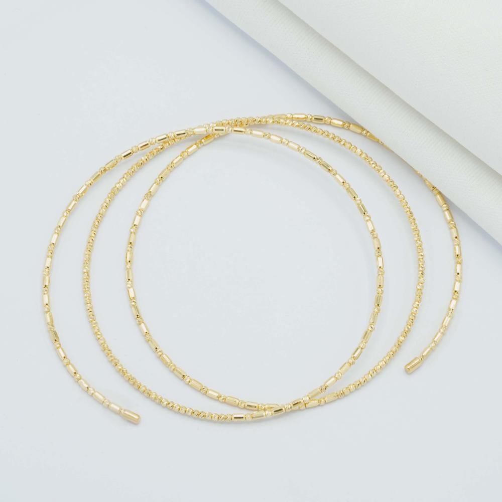 سوارة ذهب مرنة بتصميم متقن من حبيبات ذهب صغيرة متراصة بإنسجام، وتناغم مذهل، واللمعان بالسوارة مذهل للغاية، ببريق يلفت الأنظار نحوك، وتلتف هذه السوارة لتحتضن يدك، مما يجعل ارتدائها سهل، ومريح،؛ لتُبرز ذوقك الراقي وتضيف لمسة أناقة لإلطلاتك.