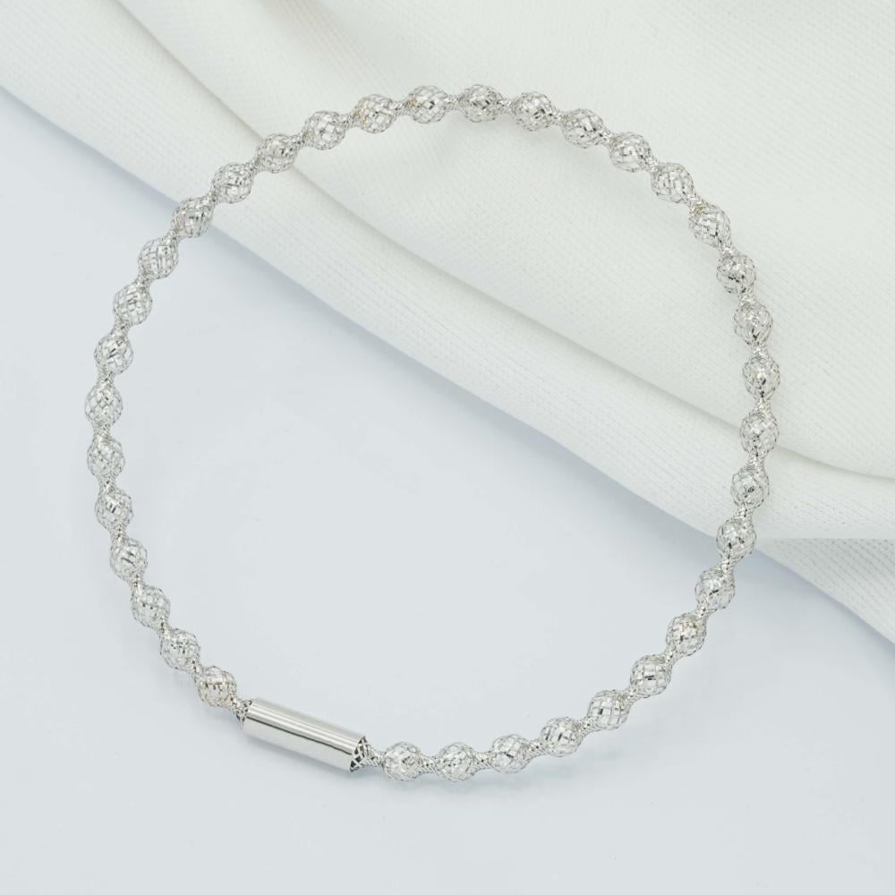 سوارة أنيقة ذهب ابيض ايطالي تعكس مزيج من الرقي، والفخامة، والترف العصري المتألق في تصميمها الاستثنائي، مصنوعة من كرات ذهب متراصة بدقة، كل حبة منها منقوشة بتفاصيل مميزة، وبها بريق مضاعف، وجاذبية لا تقاوم، مثالية لترافقك في إطلالتك اليومية، ومناسباتك الخاصة.