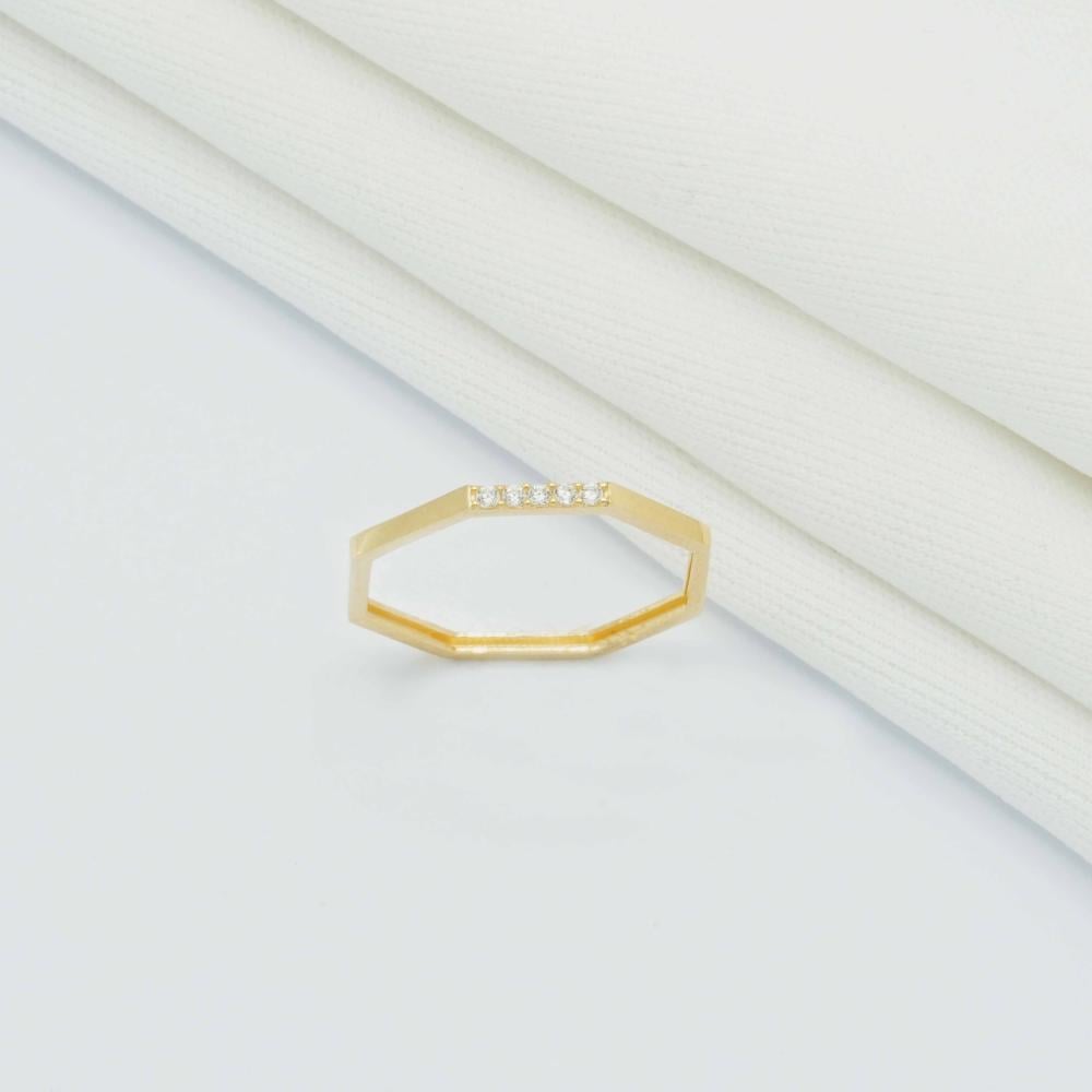 خاتم ناعم، وملئ باللمسات الأنثوية الراقية، والمميزة، مصنوع من الذهب الخالص عيار 18، تتوهج به اللمسات المتراصة بكل تألق، ويناسب استخدامك اليومي أيضًا، ويحاوط اصبعك بأناقة في كل الأوقات.