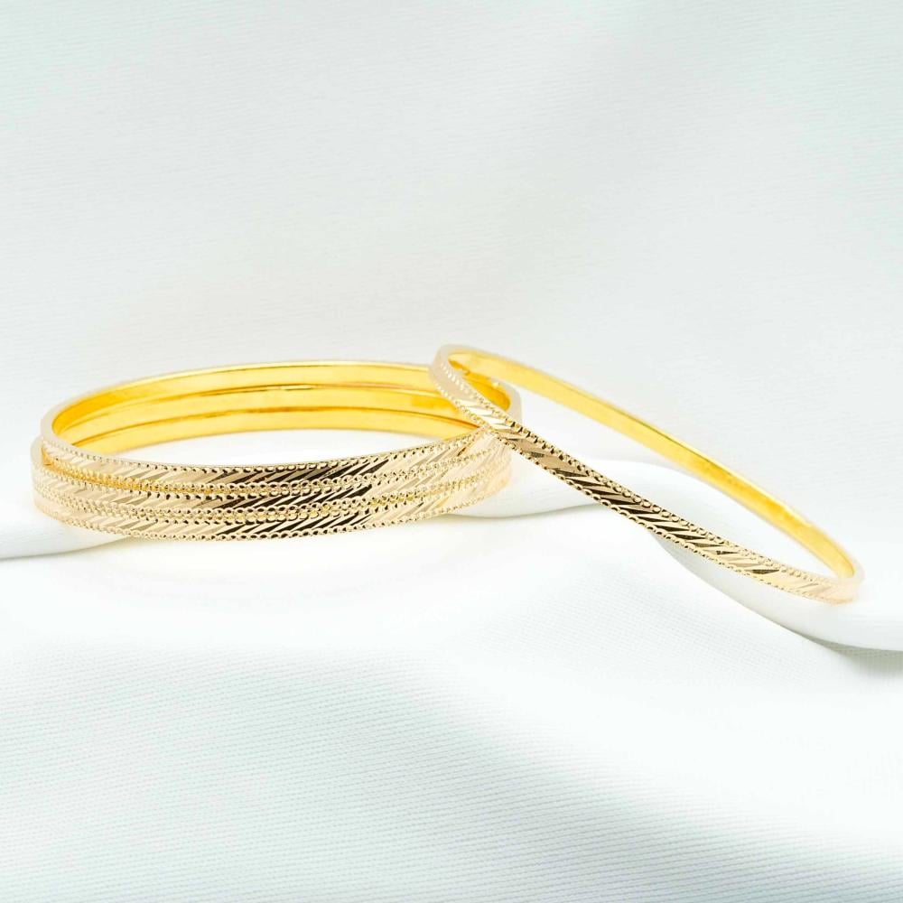 غوايش ذهب بتصميم أنيق وغير عادي، التصميم دائري، وانسيابي، ومشغول بدقة متناهية، وبتصميم يجذب الأنظار نحوك، ومحفور على سطحها نقوش مميزة، وغير عادية بأشكال ملفتة، لتكوني دومًا كما أنت ملفتة بكل تفاصيلك، وغير عادية.