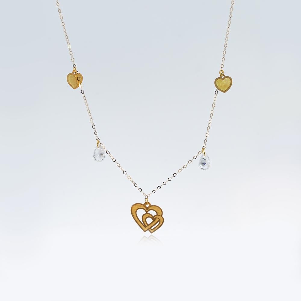 🔸 التصميم مزين بقلوب ذهبية صغيرة موزعة على طول السلسلة، مما يمنحه طابعًا رومانسيًا مميزًا.