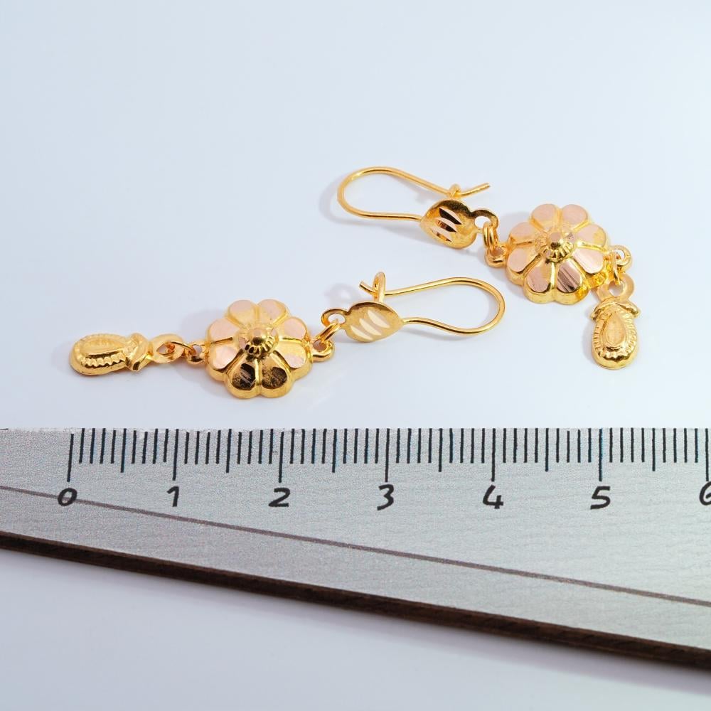 حلق عيار 21 ناعم، وأنيق، ومميز للغاية، مصنوع من الذهب الأصلي عيار 21، لو كنتي تحبين التفاصيل الناعمة فهو مناسب لكِ 100%، فكل تفاصيله استثنائية ومميزة.