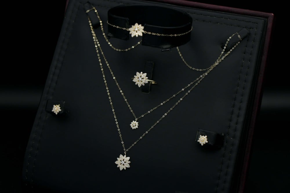 Gold set (S2595) - - Sets 18 - Necklace length: 42 cm Bracelet length: 18 cm Ring size: 17.7mm (7.5)