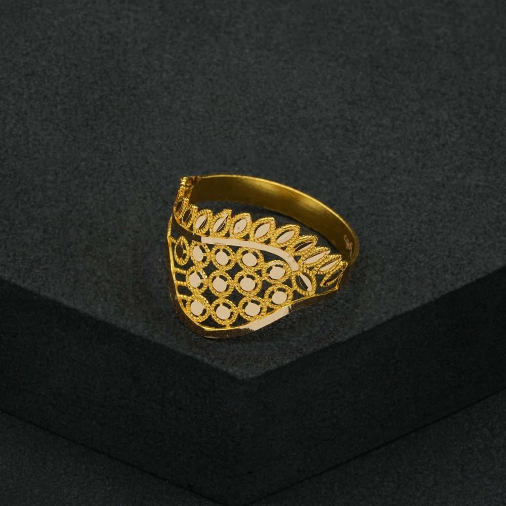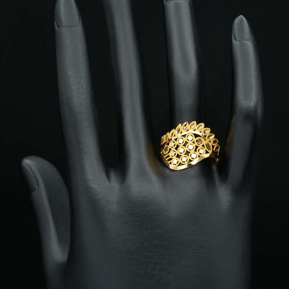 خاتم ذهب بتصميم رائع، يشبه بتلات الزهرة التي تتفتح في الربيع، مصنوع من الذهب الاصلي عيار 21، به تفاصيل دقيقة، وجذابة، ومع تداخل الأشكال الهندسية مع الزخارف الدقيقة، والرقيقة، يتكون خاتم الذهب بالشكل الأنيق. 🌟