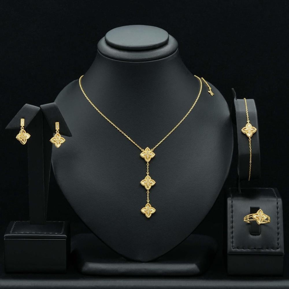 لو كان ذوقك مختلف هذا الطقم بالتأكيد سيكون لكِ، طقم ذهب عيار 18 مصنوع من الذهب الاصلي، لامع، ومميز، وكل تفصيلة في تصميمه تشعري وكأنها تروي أسطورة جمال، وتألق. 🌟