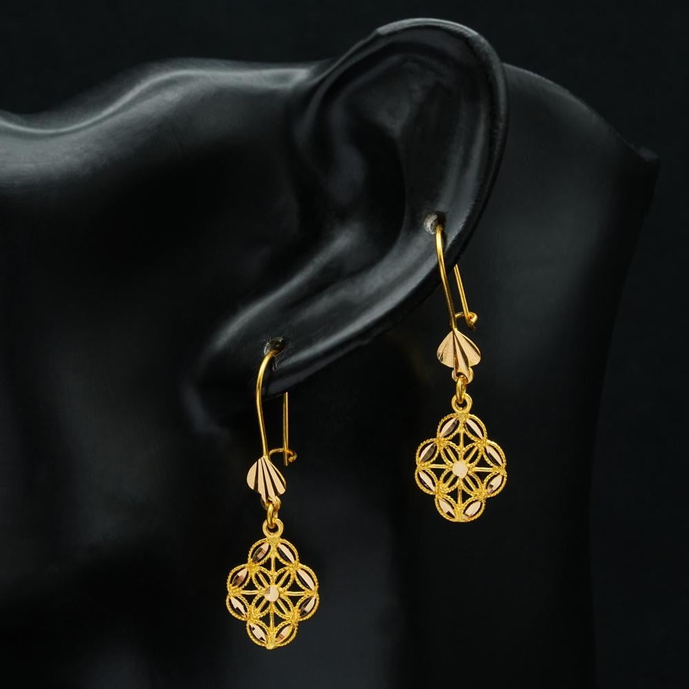 حلق عيار 21، بزخارف أنيقة، وشكل مميز، تلتف به التفاصيل بطريقة مذهلة، تلفت جميع الأنظار نحوك بجاذبية لا مثيل لها، ولإننا نعلم بلمعة اللؤلؤة بأنكِ مترفة الجمال، ونعلم أيضًا بأن اختياراتك مميزة، نقتبس كل تفاصيل الجمال ونقدمها لكِ.