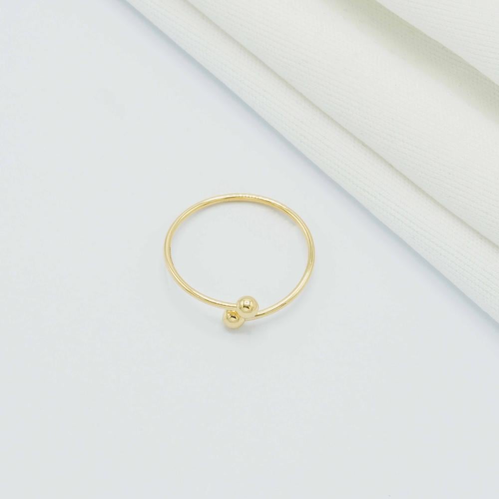 خاتم ذهب ايطالي عيار 18، بساطته أنيقة بلمسة عصرية، ناعم يجمع بين الرقة واللمسات الأنثوية الراقية، تصميمه مفتوح يتزين بكرتين ذهبيتين صغيرتين تضيفان عليه لمسة عصرية ساحرة، تجعل منه قطعة مثالية للاستخدام اليوم، والمناسبات الخاصة، يلتف حول إصبعك بأناقة، ورقة؛ ليمنحك إطلالة مليئة بالتميز والجاذبية.
