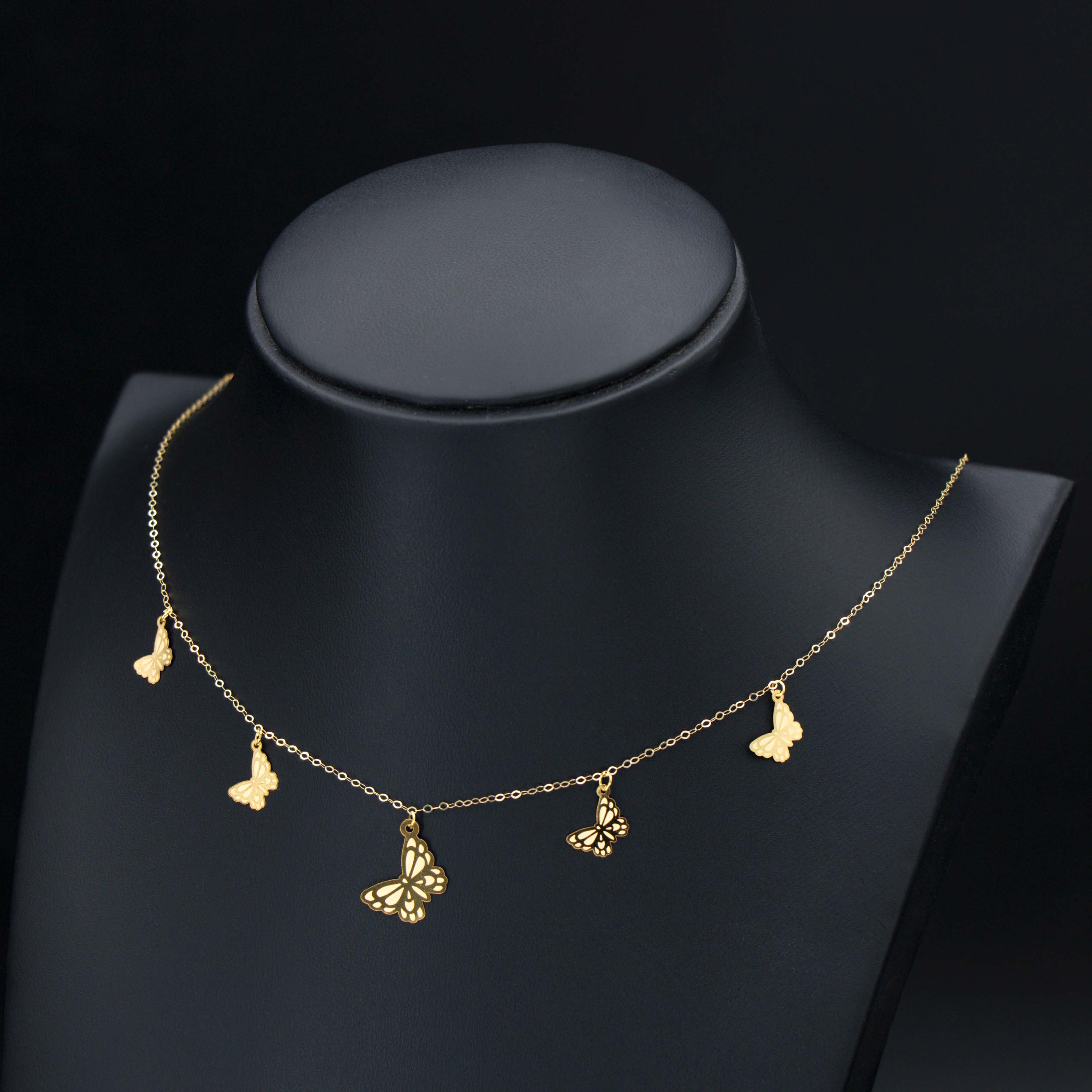 عقد ذهب الفراشات الناعم