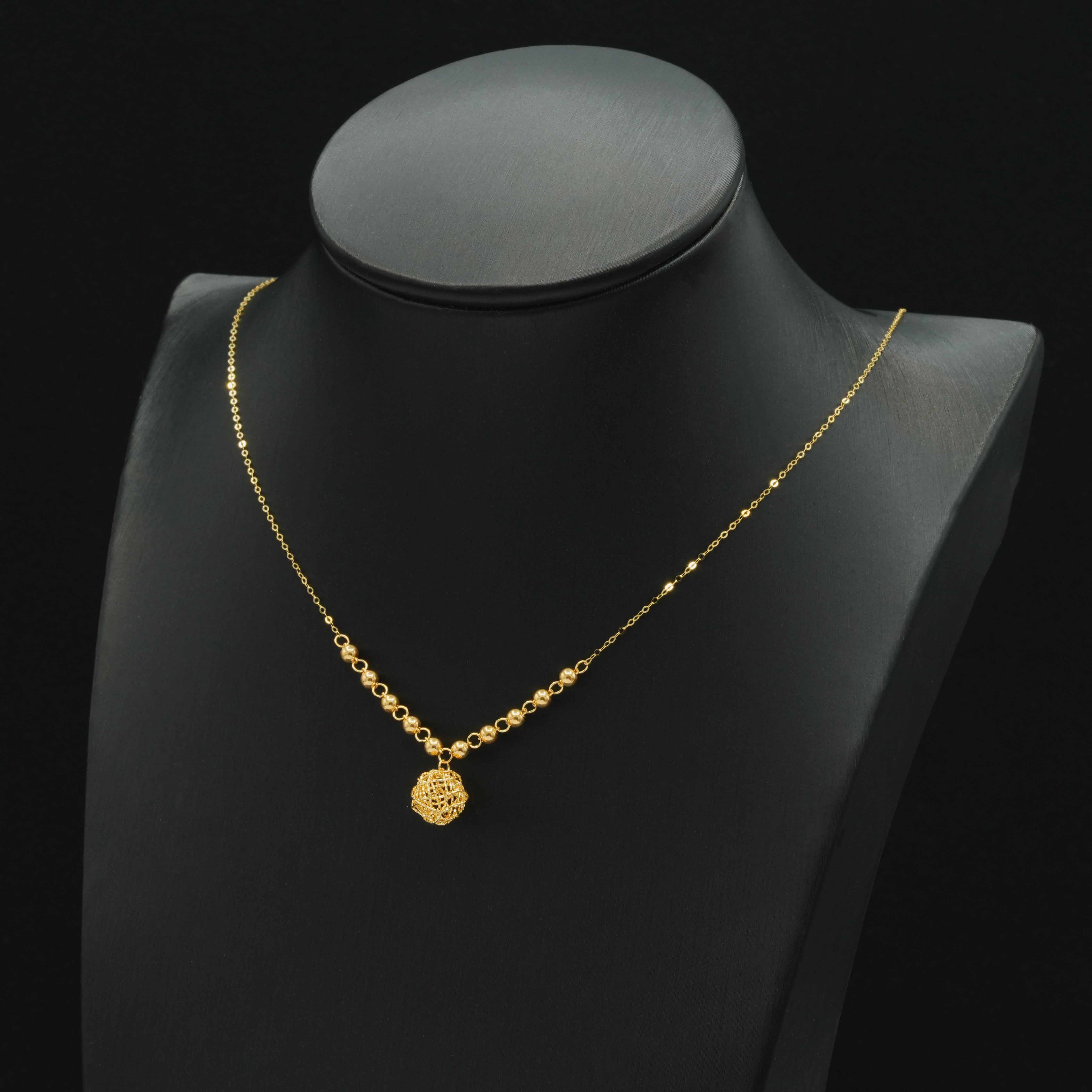 عقد ذهب ايطالي بتصميم آسر مميز يجسد الأناقة الكلاسيكية مع اللمسات العصرية، حيث أنه يتكون من سلسلة مميزة تتدرج فيها كرات ذهب صغيرة تنساب برقي حتى تصل لتعليقة دائرية مفرغة بنفش مزخرف يفيض فخامة، وملئ باللمعان وملفت للأنظار؛ ليحاوط عنقك ويضيف إطلالة مترفة لا تزول مع مرور الوقت