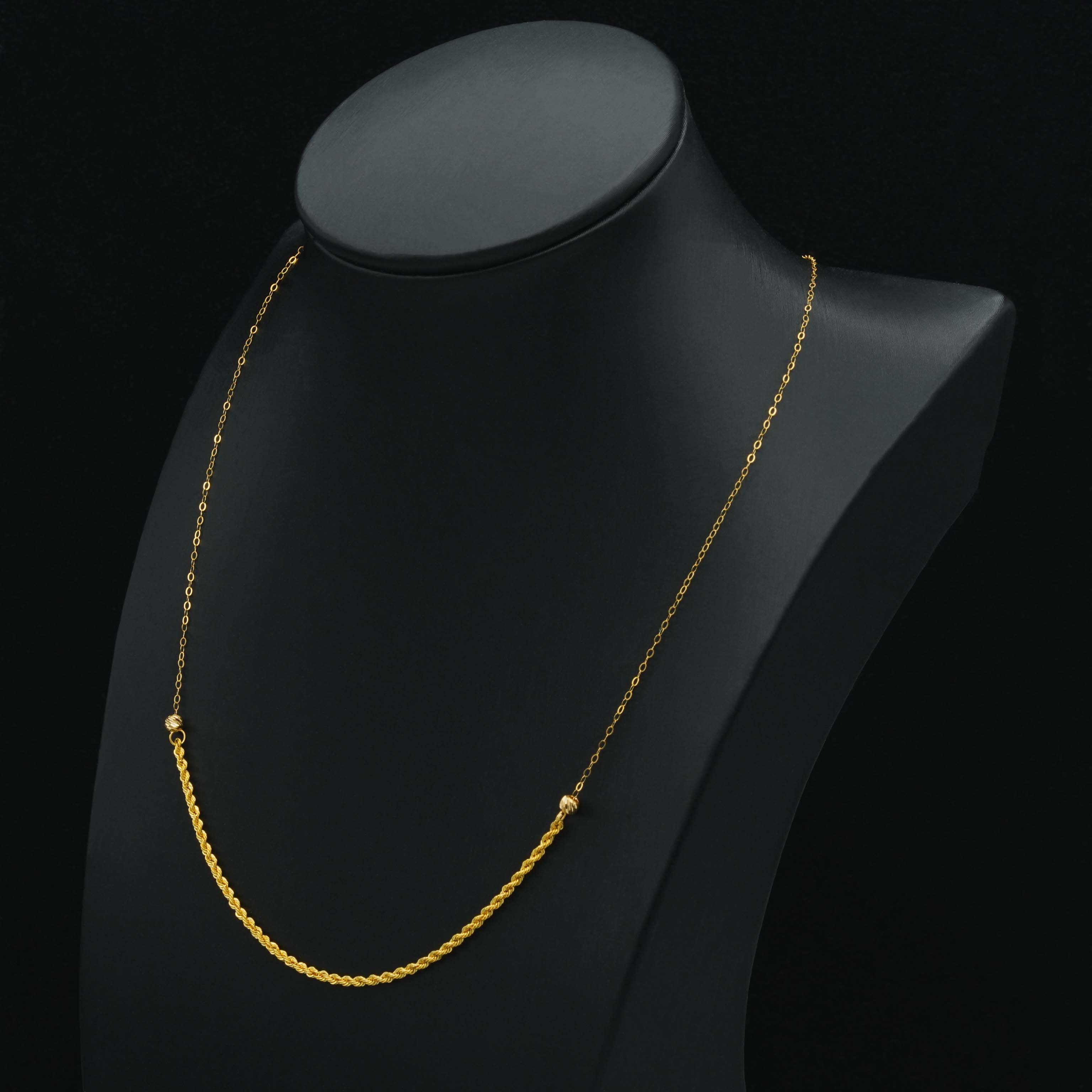 سبحة ذهب مصنوعة من الذهب الخالص بتصميم فخم ، ولافت، وطول أنيق ينساب على الرقبة بكل تألق، تفاصيله الهادئة، والفاخرة تجمع بين الرقي والفخامة، لتكملي إطلالتك بأسلوب استثنائي، ومختلف. .
