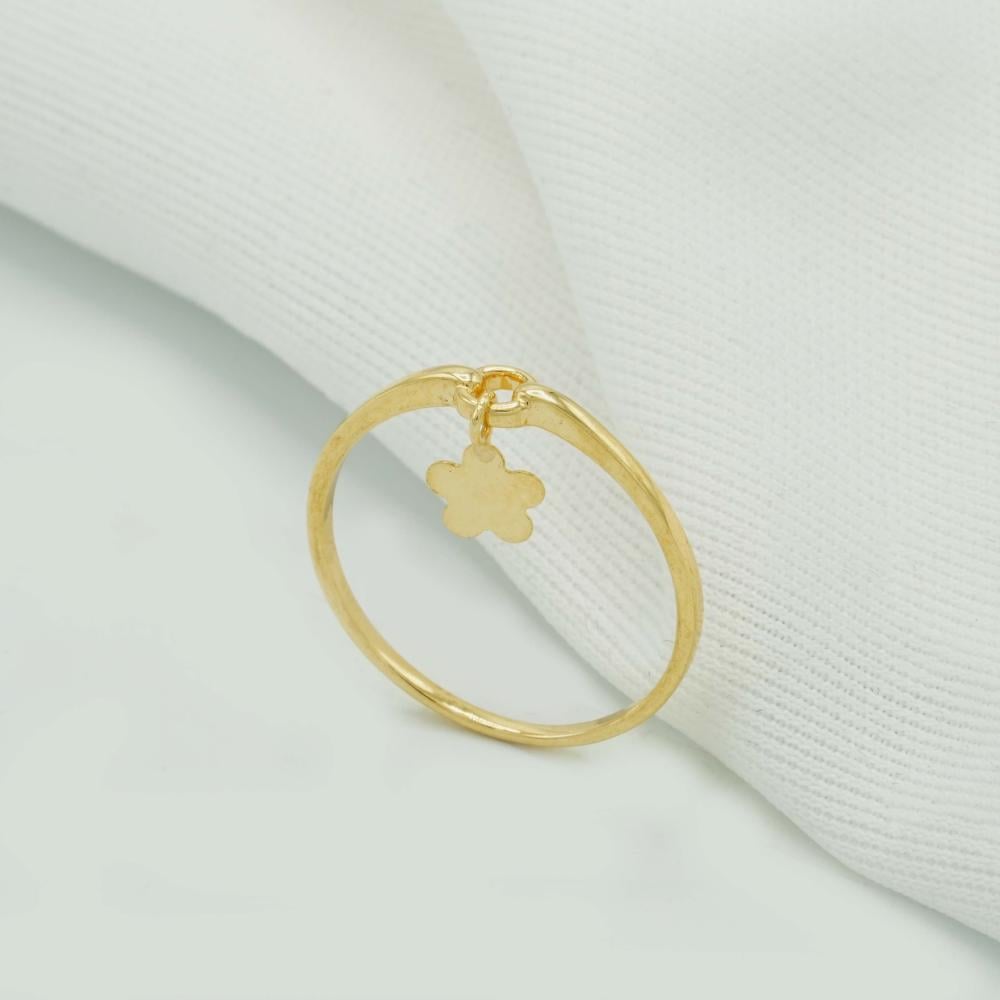 خاتم ذهب ناعم مصنوع من ذهب ايطالي عيار 18، يحمل في تفاصيله الأناقة، والرقي، والبساطة، يتكون من حلقة ذهب بتصميم متوازن أنيقمع تعليقة صغية متدلية على شكل زهرة ناعمة، تضيف له لمسة أنوثة مليئة بالحيوية، والجمال، هذا الخاتم هو إشارة إلى جمالك الطبيعي، وروحك الراقية. ✨