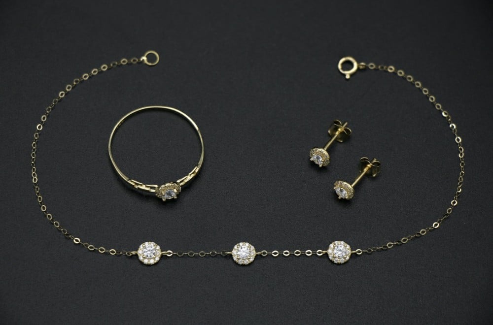 Gold set (S2615) - - Sets 18 - Necklace length: 40 cm Bracelet length: 17 cm Ring size: 17.7 mm (7.5)