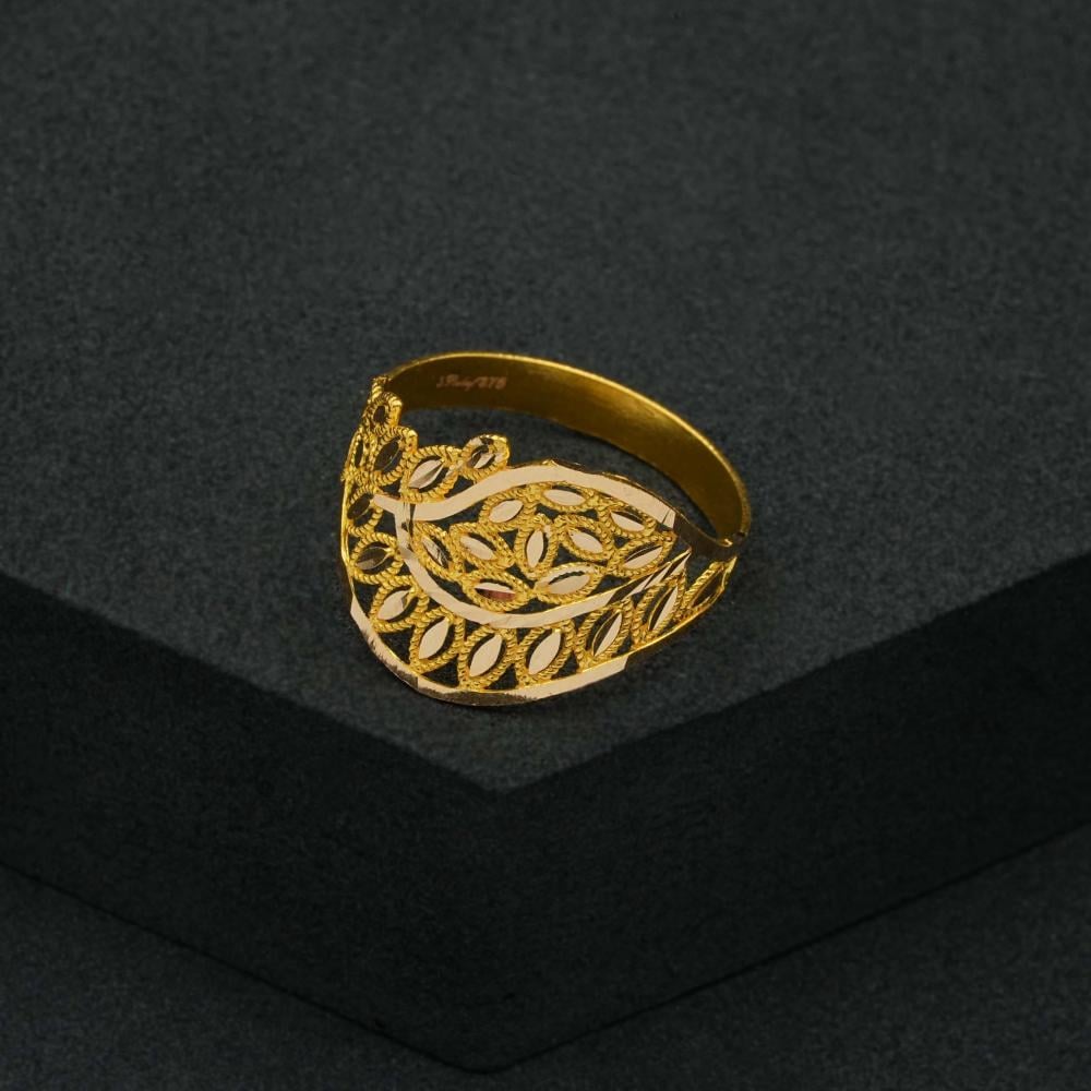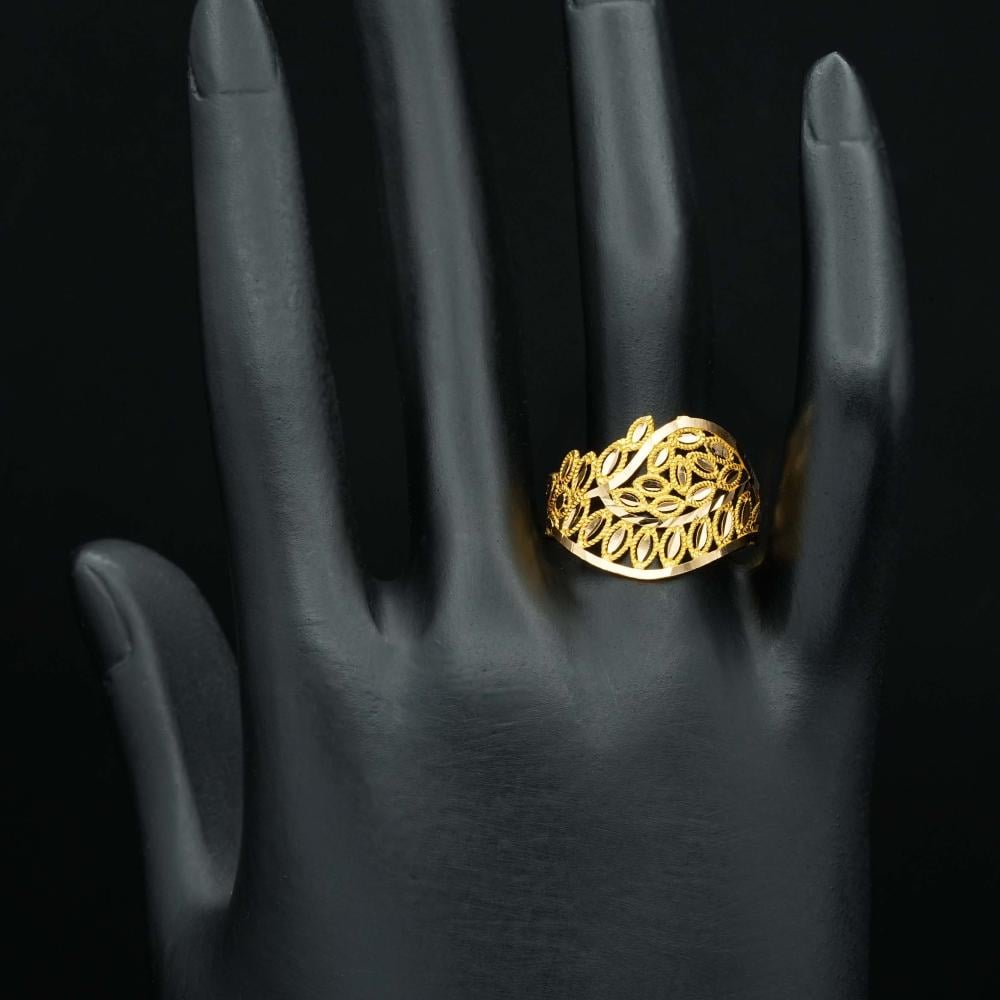 خاتم ذهب بتصميم رائع، يشبه بتلات الزهرة التي تتفتح في الربيع، مصنوع من الذهب الاصلي عيار 21، به تفاصيل دقيقة، وجذابة، ومع تداخل الأشكال الهندسية مع الزخارف الدقيقة، والرقيقة، يتكون خاتم الذهب بالشكل الأنيق. 🌟
