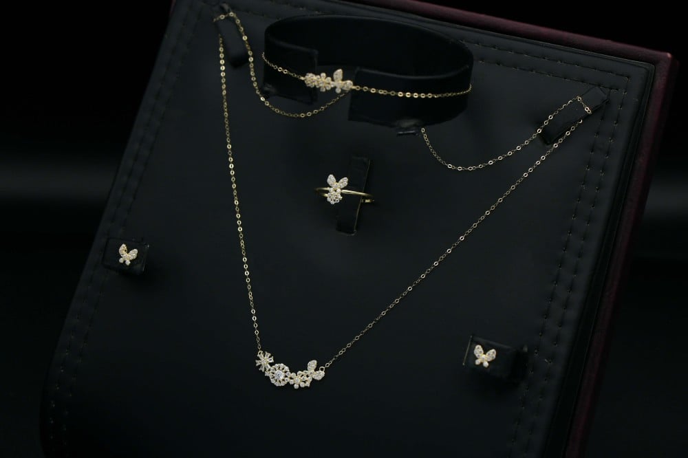 Gold set (S2604) - - Sets 18 - Necklace length: 44 cm Bracelet length: 18 cm Ring size: 17.7mm (7.5)