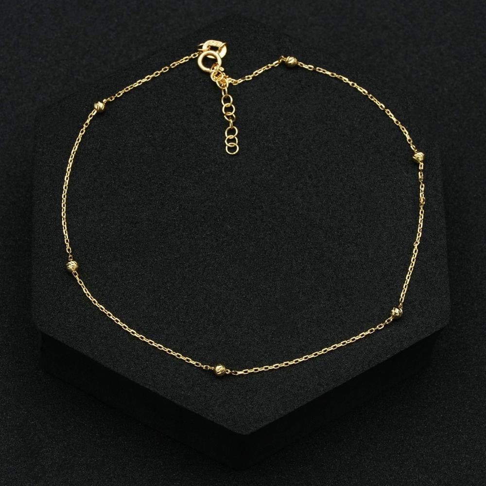 A gold anklet with a distinctive and unique design, comes with a thin chain decorated with small gold balls, adding a touch of charm and unparalleled brilliance. The simple design makes it very distinctive, suitable for special occasions, and even for daily use. 💃✨