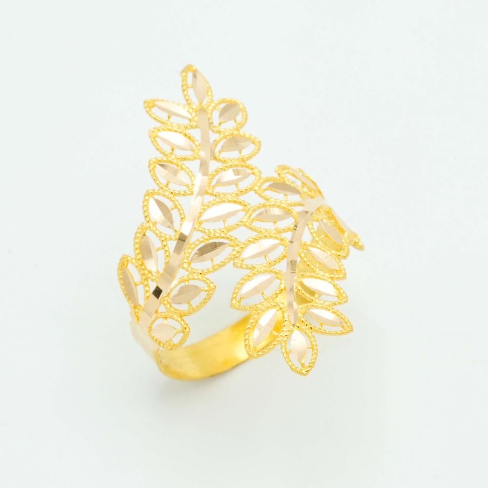 خاتم غصن الزيتون، مصنوع من الذهب الخالص عيار 21، ومقتبس من جمال الطبيعة، تتوزع أوراقه المفرغة بدقة على جانبي إصبعك لتحاوطه بكل رقي.🌿