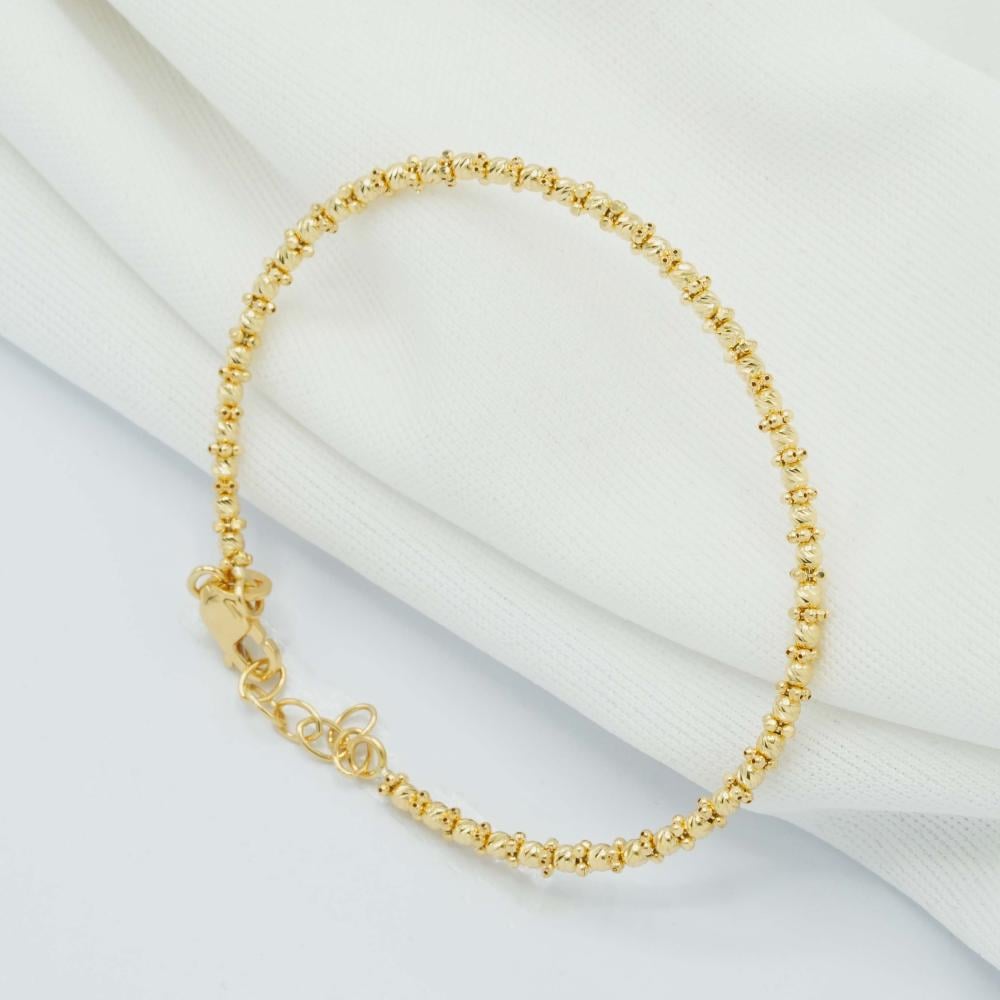 سوارة دوريكا ذهب ايطالي عيار 18، بتصميم متألق مميز، بحبيات متناثرة برقة على طول السوارة، مزيج أنيق للغاية من الأناقة التي تسطع على طول السوارة؛ لتمنحها تألق وجاذبية لا مثيل لها، ولتليق بك، وبجاذبيتك، ولتزي يدك بكل الأوقات.