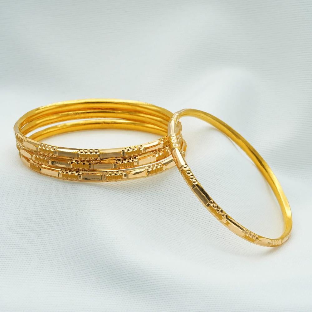 غوايش ذهب أطفال بتصميم مستطيلات لامعة ونقوش ناعمة، خفيفة وأنيقة على يد الصغيرة، لما الأم تهدي بنتها هالغويشة، كأنها تهديها لمعة من قلبها، وتقول لها: