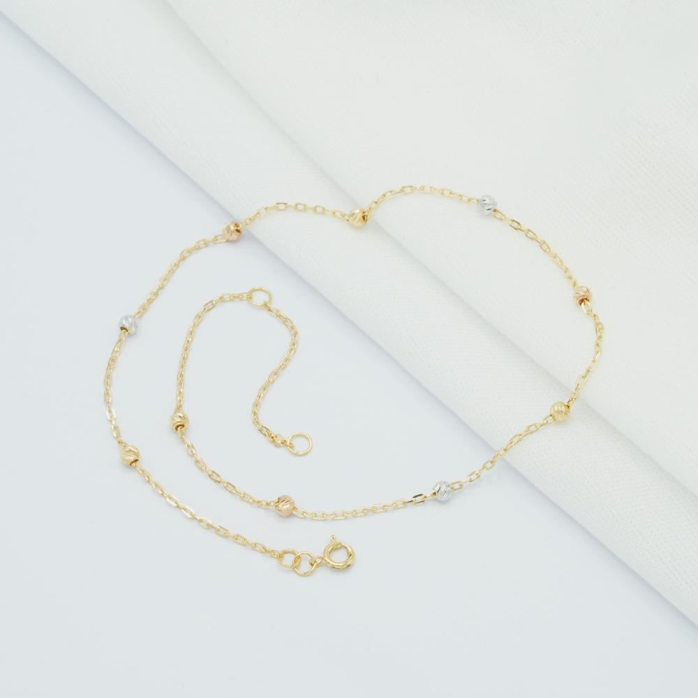 خلخال ذهب ناعم للغاية يجمع بين الأناقة الهادئة، والأنوثة في كل التفاصيل، بتصميم سلسلة ذهب تتناثر على امتداده حبيبات صغيرة لامعة، مع توازن ساحر، ويلتف بكل جاذبية، وكأنه خيط من اللمعان؛ ليمنح قدمك لمسة مليئة بالأنوثة، وتزداد جمالًا مع كل حركة.